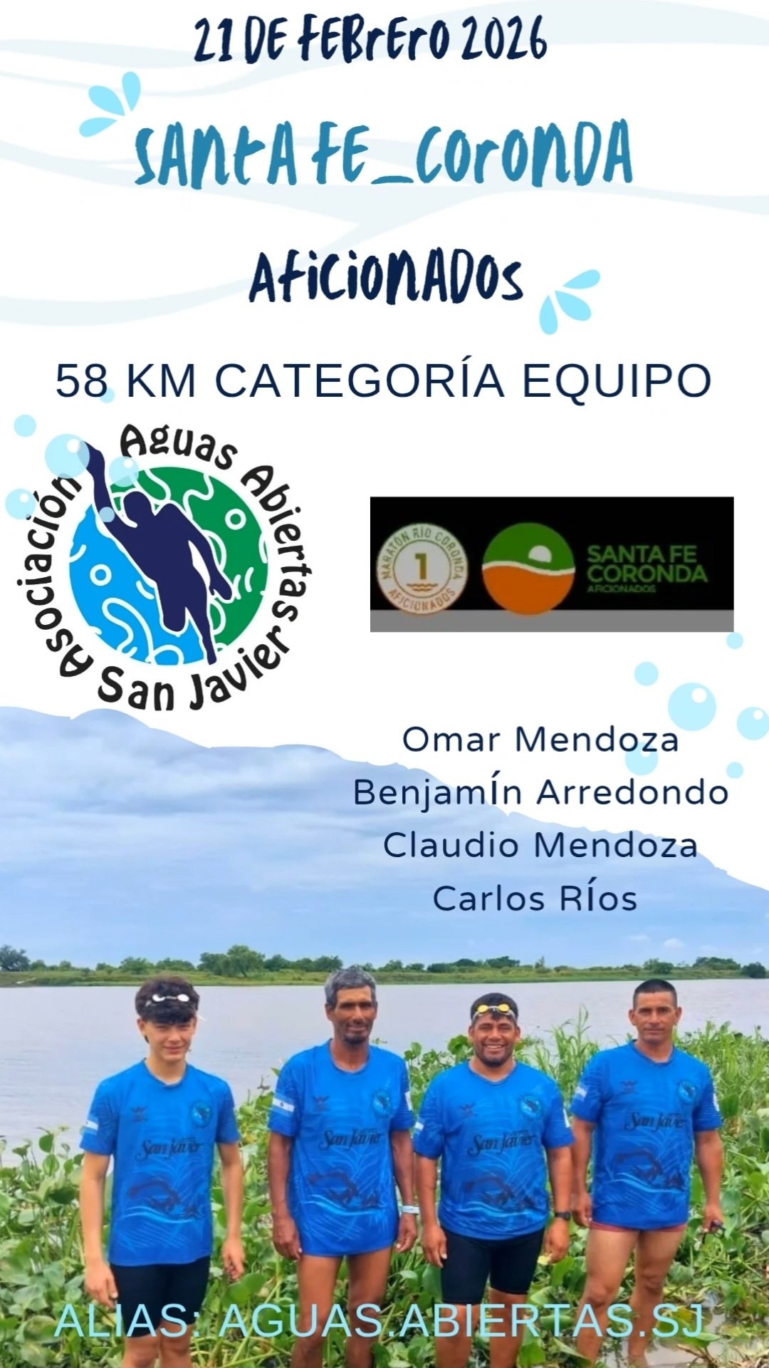 * Apoyo económico: Para colaborar con los gastos de la competencia, se encuentra disponible el Alias: AGUAS.ABIERTAS.SJ